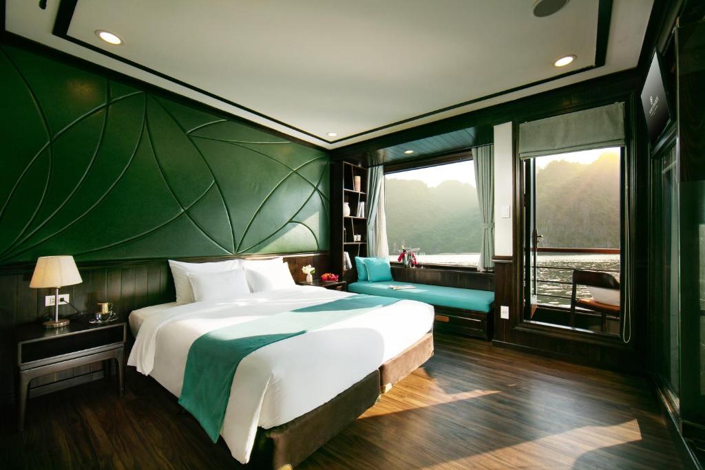 A distinctive highlight of the Family Deluxe Cabins is the exquisite handcrafted wooden decor, skillfully crafted by talented Vietnamese artisans. This attention to detail adds a unique charm and sophistication, enhancing the overall luxury and appeal of the accommodations.