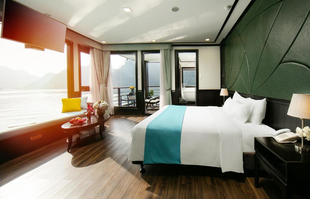 These opulent cabins are located on the second floor, each featuring a private balcony that offers stunning vistas of the legendary bays. The enchanting views become even more captivating as you step into these meticulously designed rooms. The Premium Deluxe Cabins are the epitome of luxury and refinement, crafted to provide an experience of unparalleled elegance and comfort. Every detail is thoughtfully arranged to enhance your stay and allow you to fully immerse yourself in the breathtaking beauty of the surroundings.